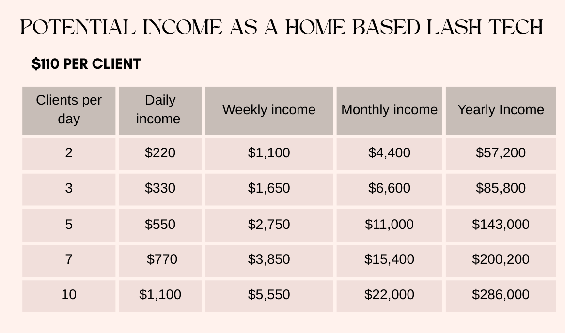 With experience and premium services, many lash artists reach six-figure yearly income.